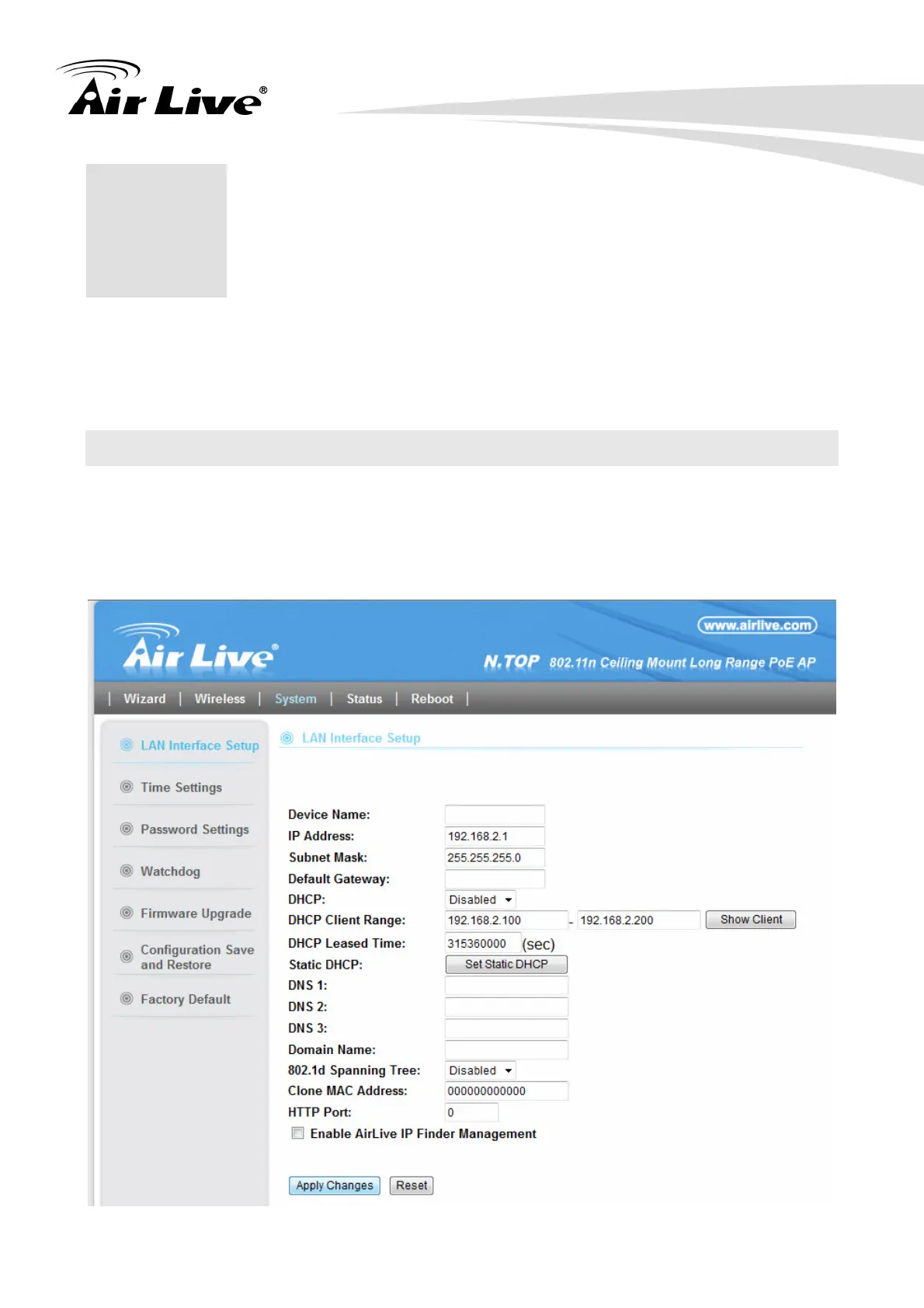 Bekijk gratis de handleiding van Airlive N.TOP, stel vragen en lees de antwoorden op veelvoorkomende problemen, of gebruik onze assistent om sneller informatie in de handleiding te vinden of uitleg te krijgen over specifieke functies.