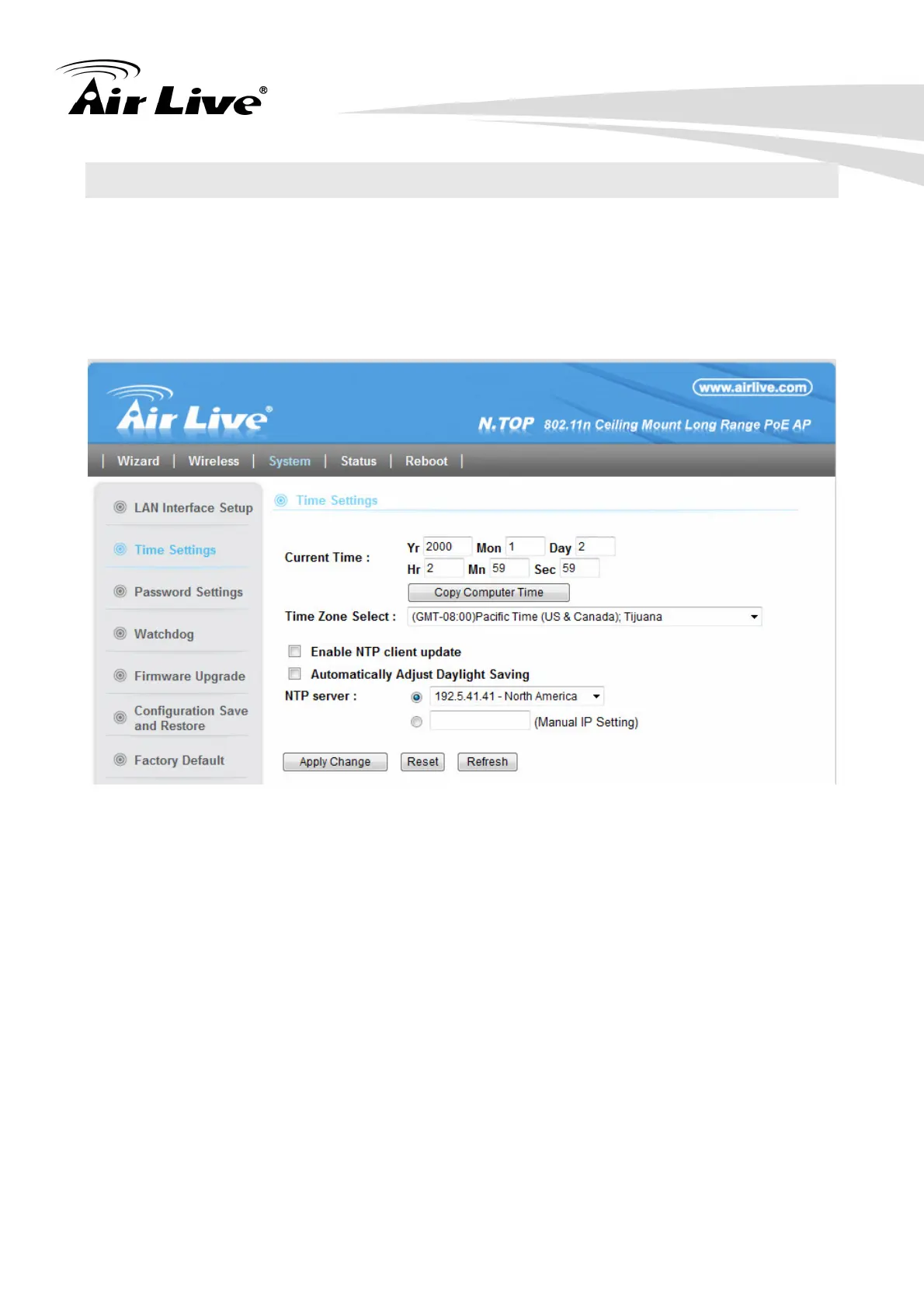 You can set the NTP Time Server for your N.TOP’s internal clock here. You can use NTP