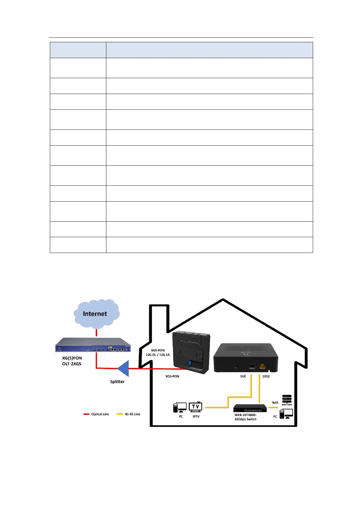 Figure 1-4-1: Application chart, when using XG-Pon it will be 10G DL/2.5G UL