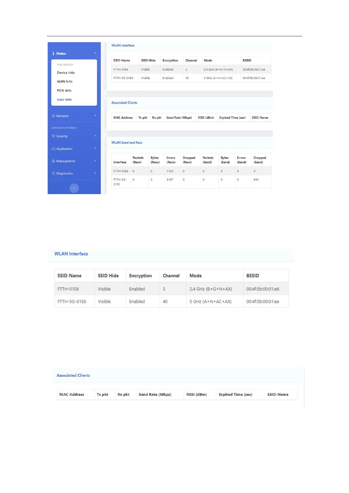 packet on send or receive direction, Send Rate, RSSI, Expired Time and SSID-Name.