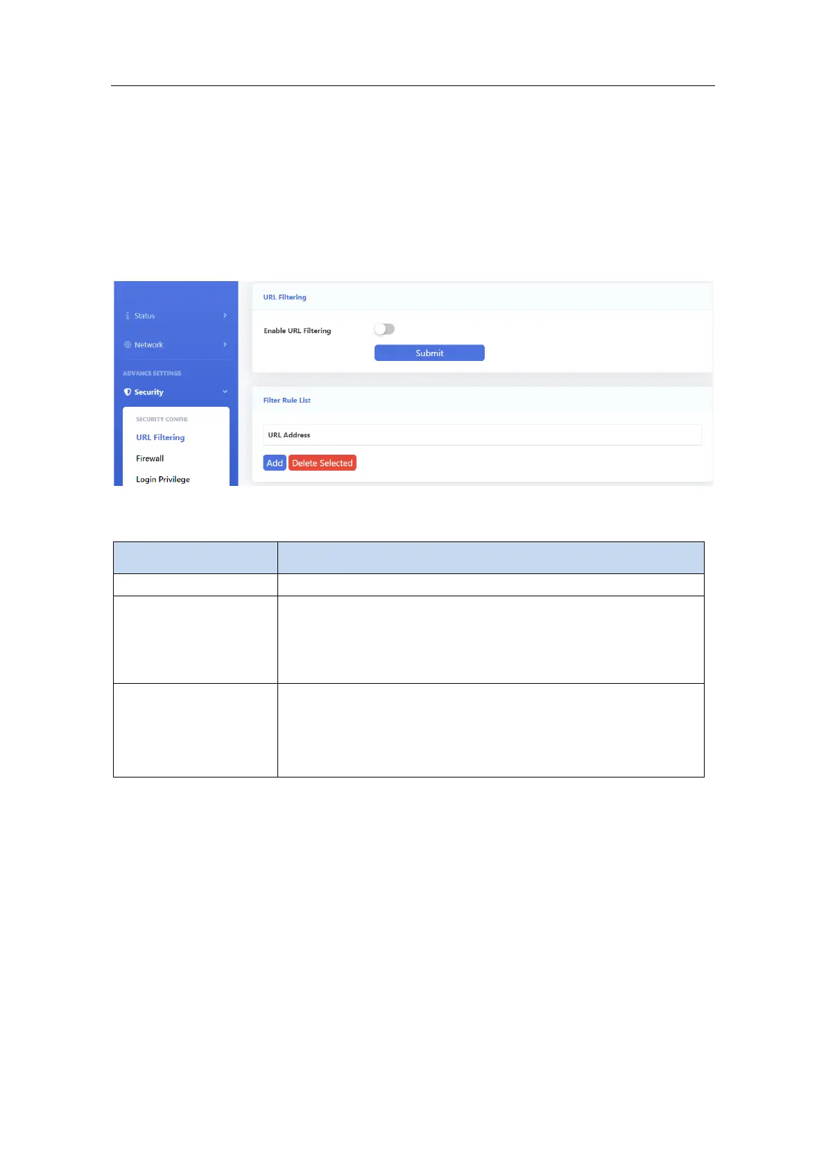 This page allows you to configure URL filter. URL filter is taking effect when the wan