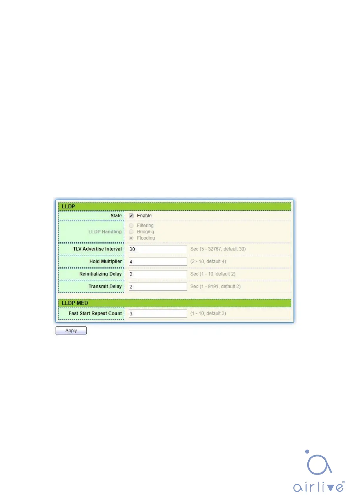 1. Click the “Discovery > LLDP > Property” in the navigation bar as follows.