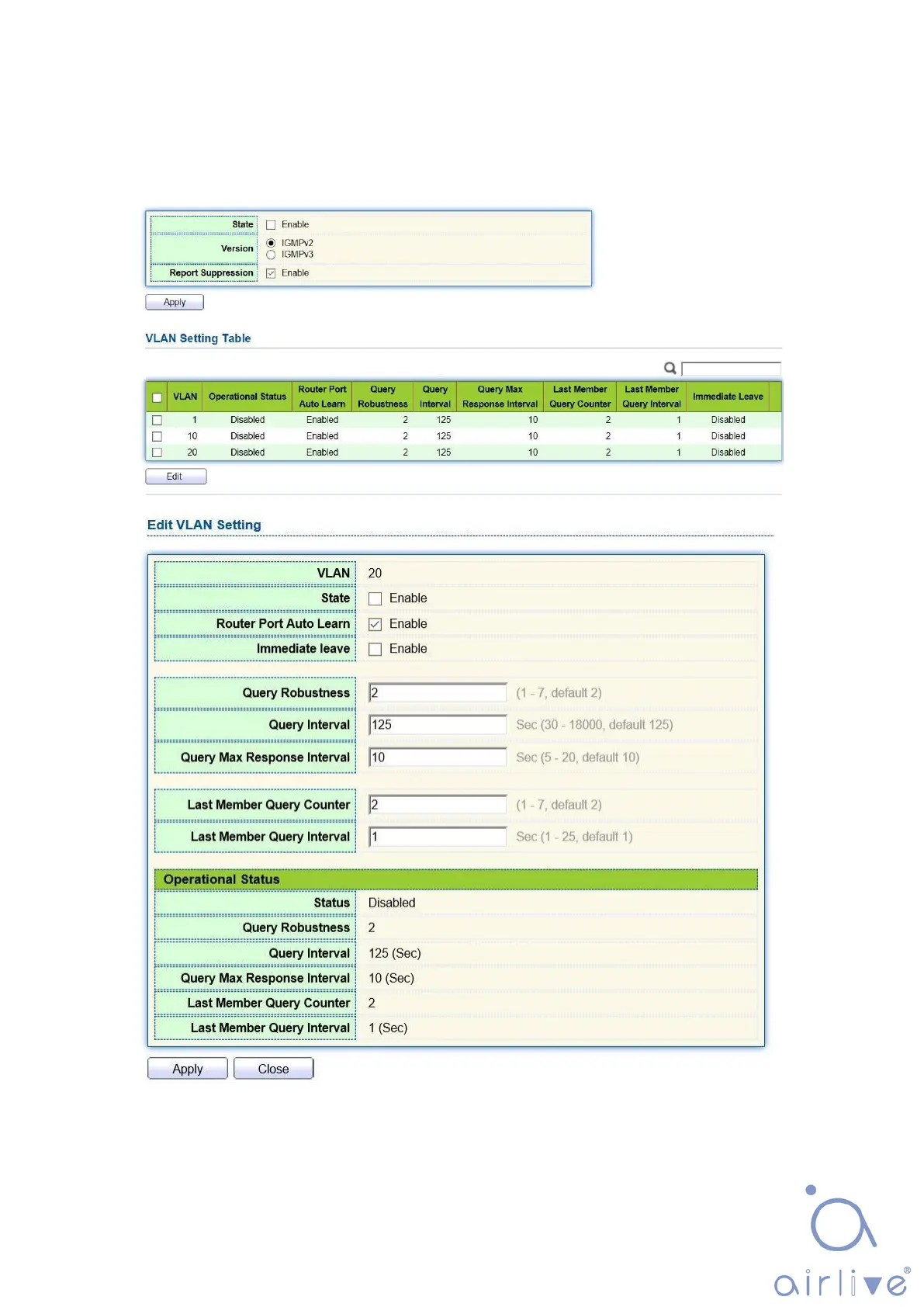 1. Click the “Multicast > IGMP Snooping > Property”, select the VLAN to be configured