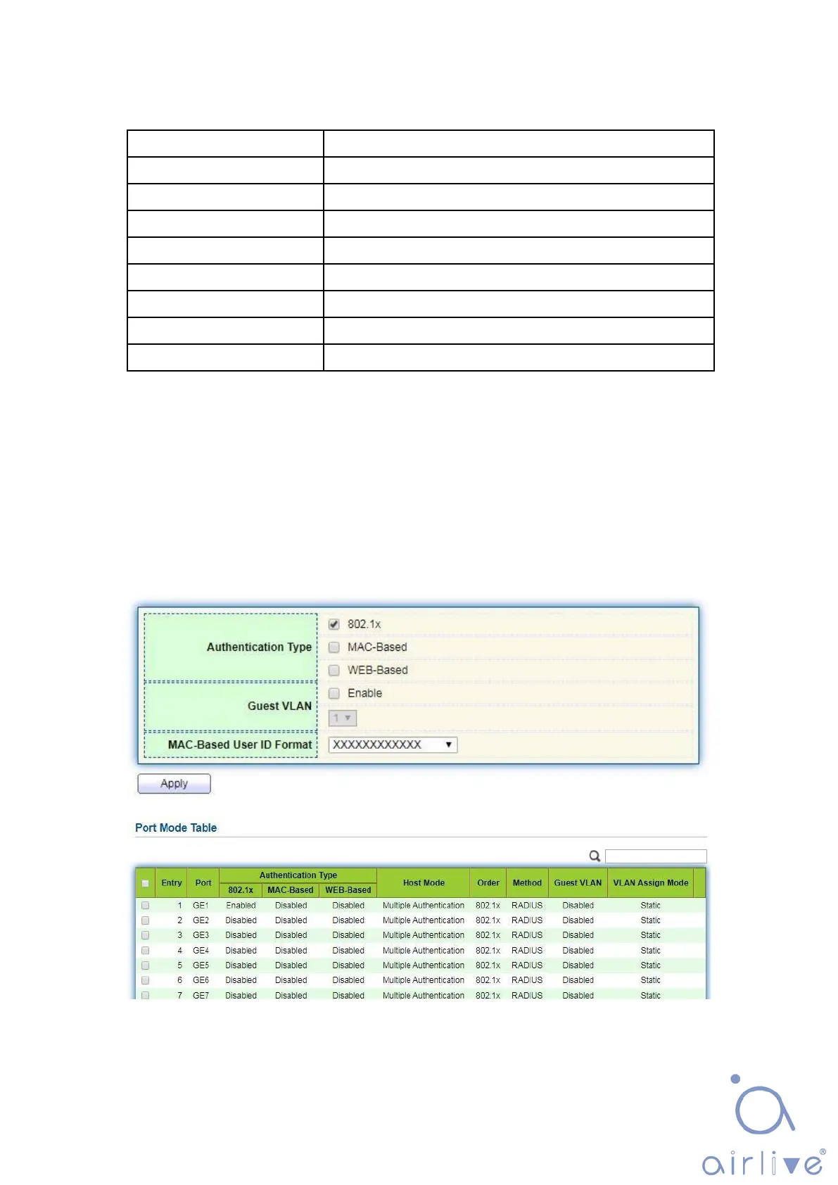 Enable the global setting of 802.1x/MAC/WEB authentication network access control.