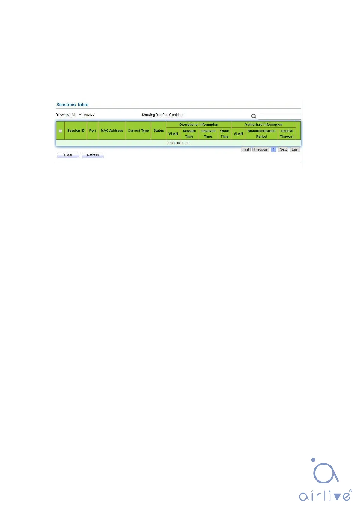 1. Click the “Security > Management Manager > Sessions”, view sessions