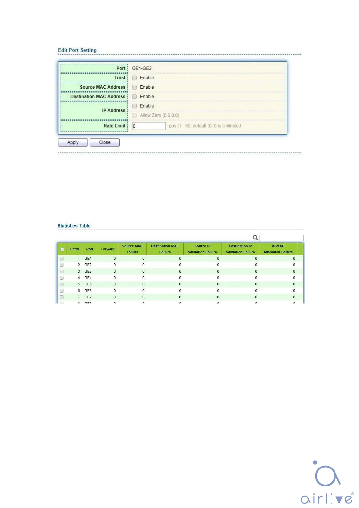1. Click the “Security > Dynamic ARP Inspection > Statistics” view DAI