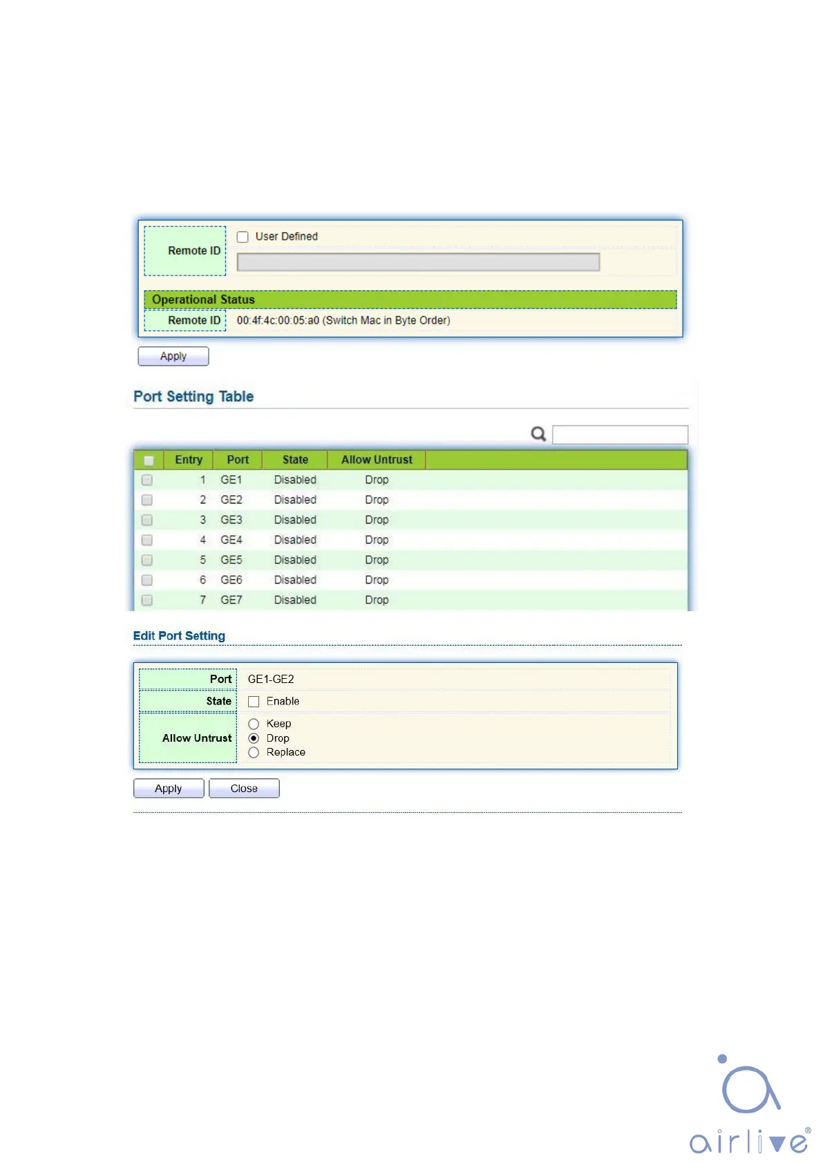 1. Click the “Security > DHCP Snooping > Option82 Property”. Global and port