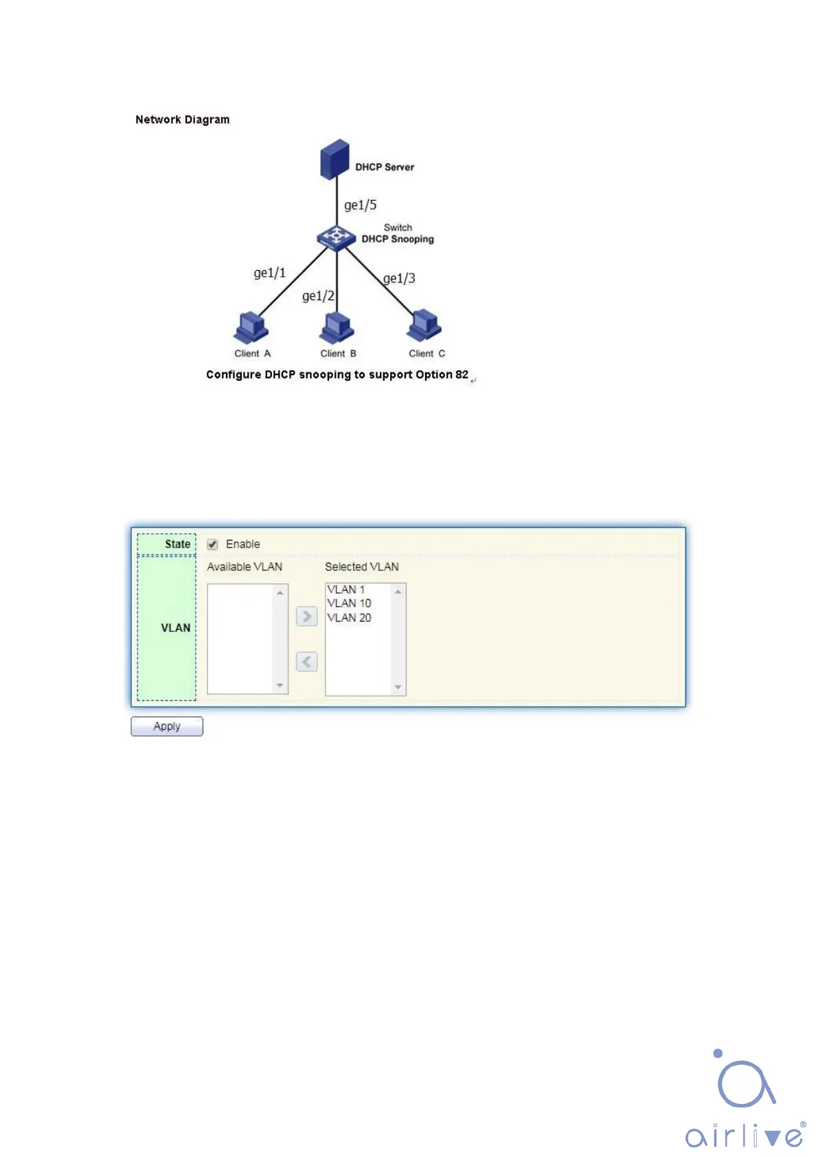 1. Enable the DHCP Snooping of switch. Click the “Security > DHCP Snooping >