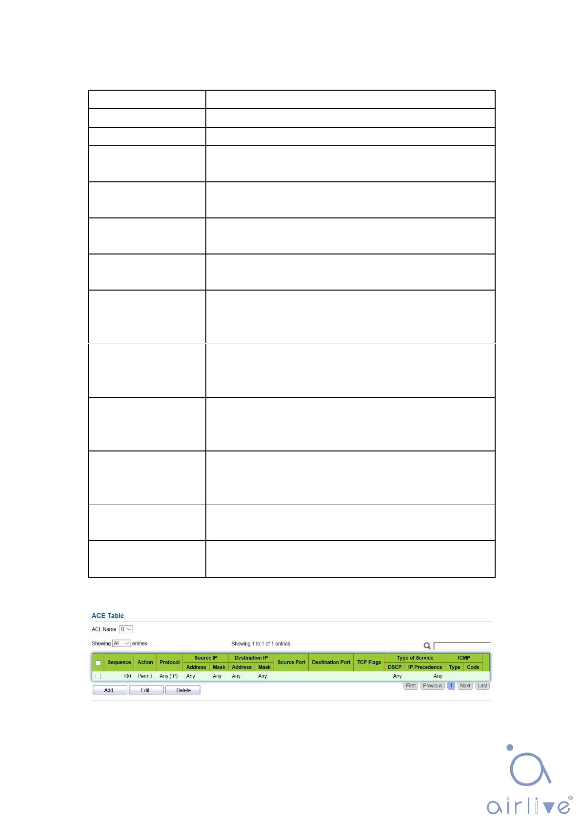 Enter the source IP and mask of ACL rules. Select “Any” to
