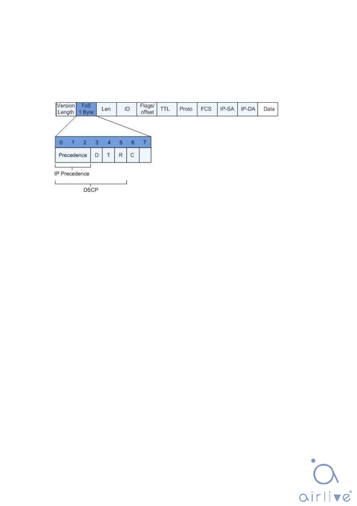 According to RFC791 definition, ToS (Type of Service) domain in the IP message