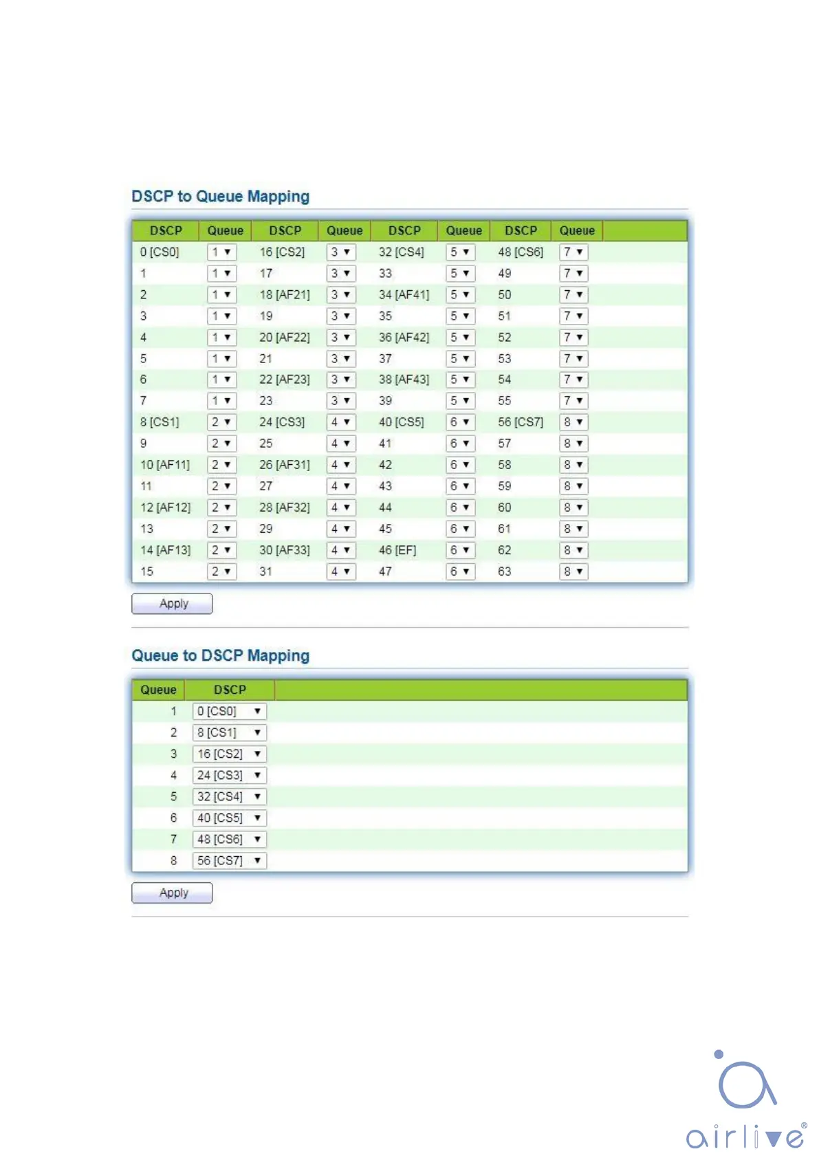 1. Click the “QoS > General > DSCP Mapping”. “Apply” and finish as follows.