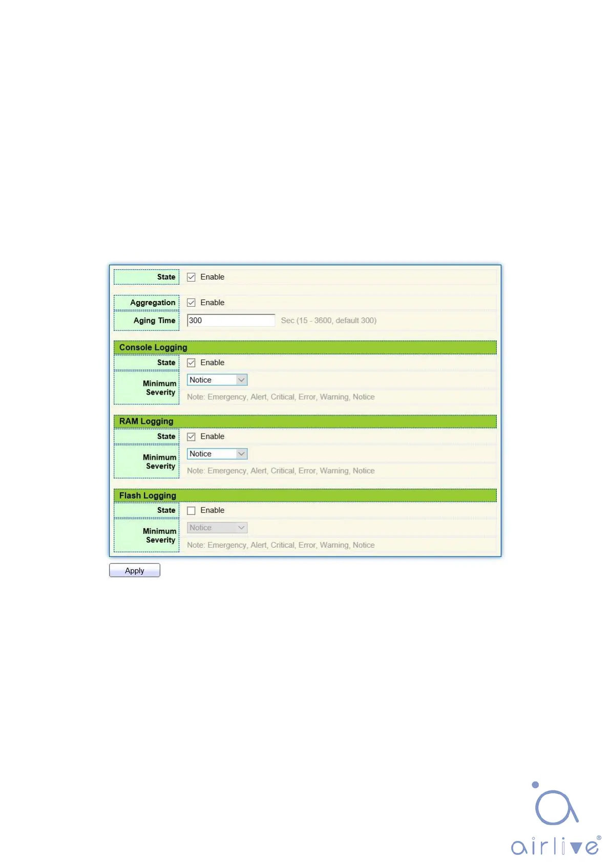 1. Click the “Diagnostics > Logging > Property” in the navigation bar to switch logs