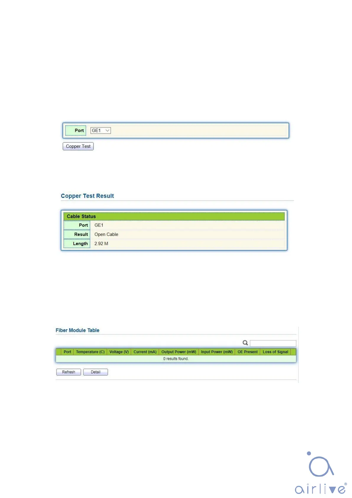 1. Click the “Diagnostics > Copper Test” in the navigation bar to select a port for test