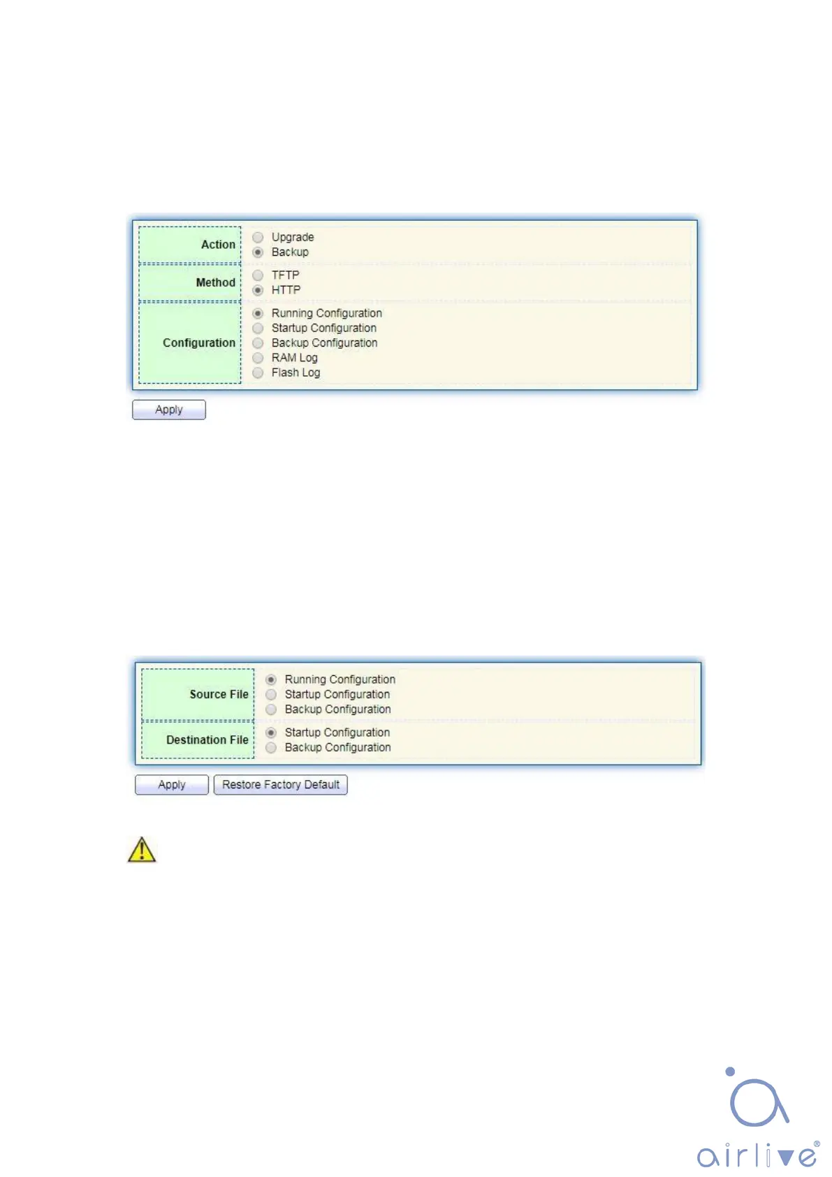 “Backup Configuration” or “Running Configuration”) and the “Backup Configuration”