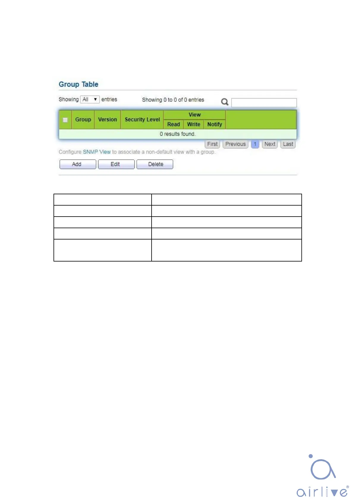 1. Click the “Management > SNMP > Group” in the navigation bar as follows.