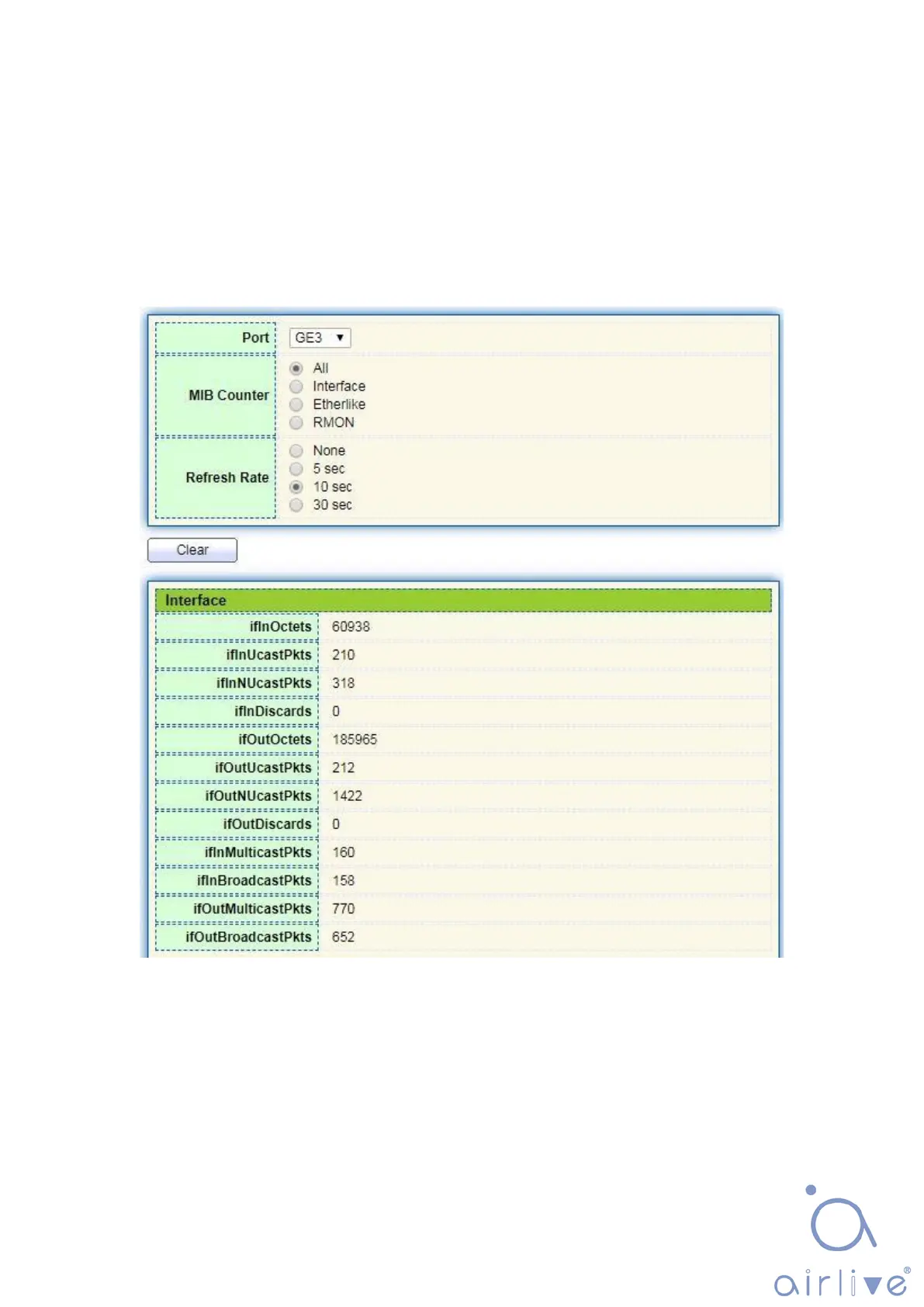1. Click the “Status > Port > Statistics” in the navigation bar as follows: