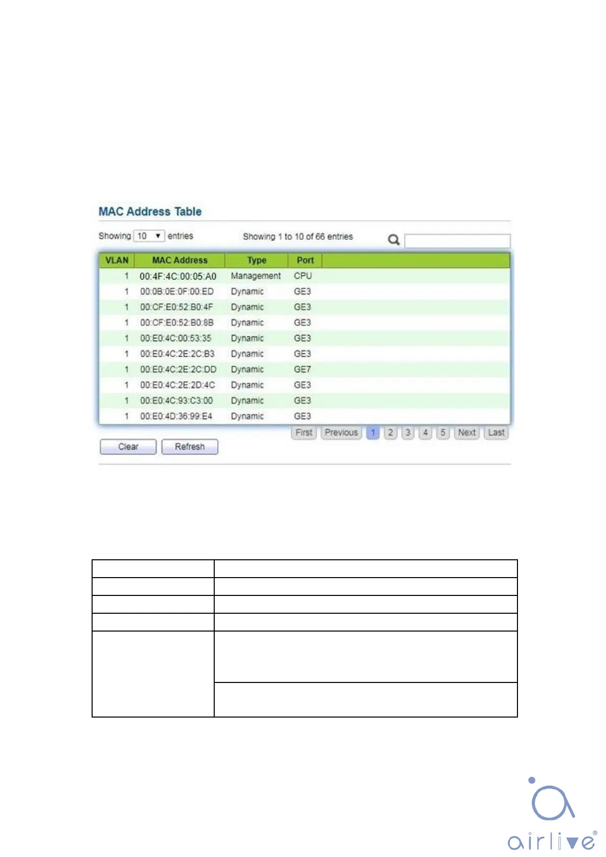 1. Click the “Status > MAC Address Table” in the navigation bar as follows: