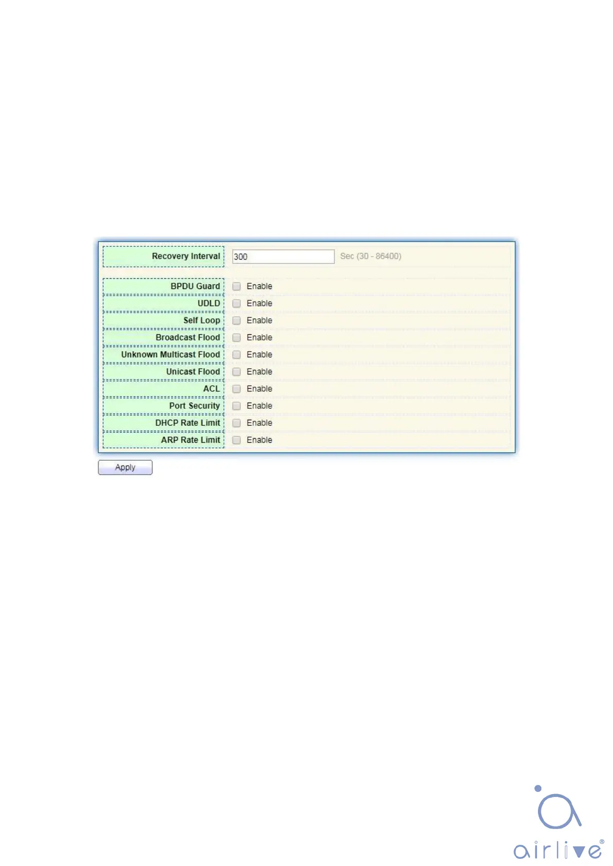 1. Click the “Port > Error Disabled” in the navigation bar to enable or disable