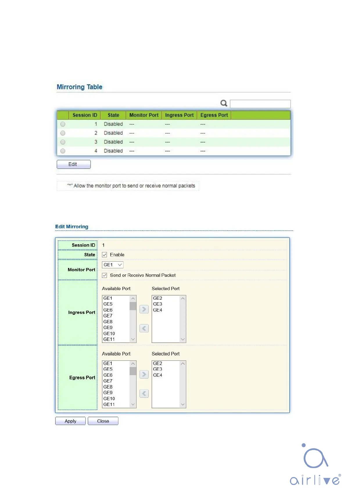 1. Click the “Port > Mirroring” in the navigation bar. 4 sets of flow mirroring rules can