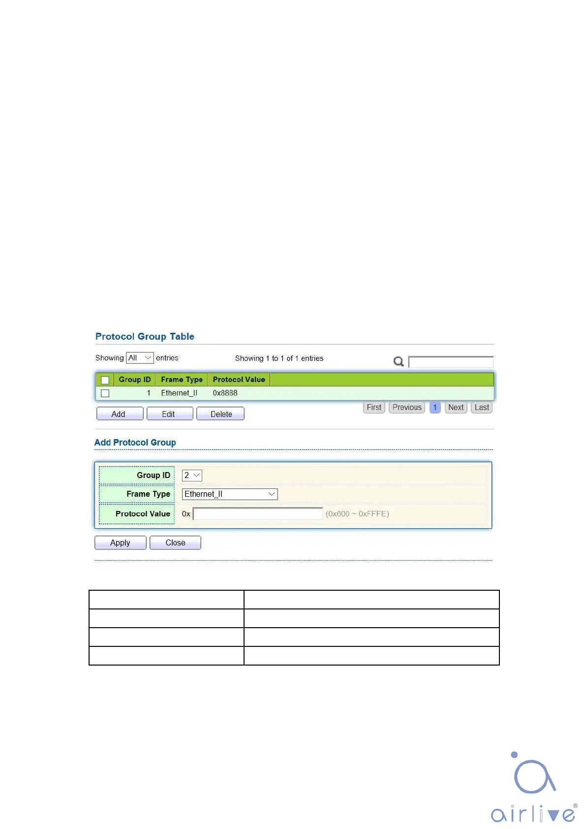 1. Click the “VLAN > Protocol VLAN > Protocol Group” in the navigation bar as follows: