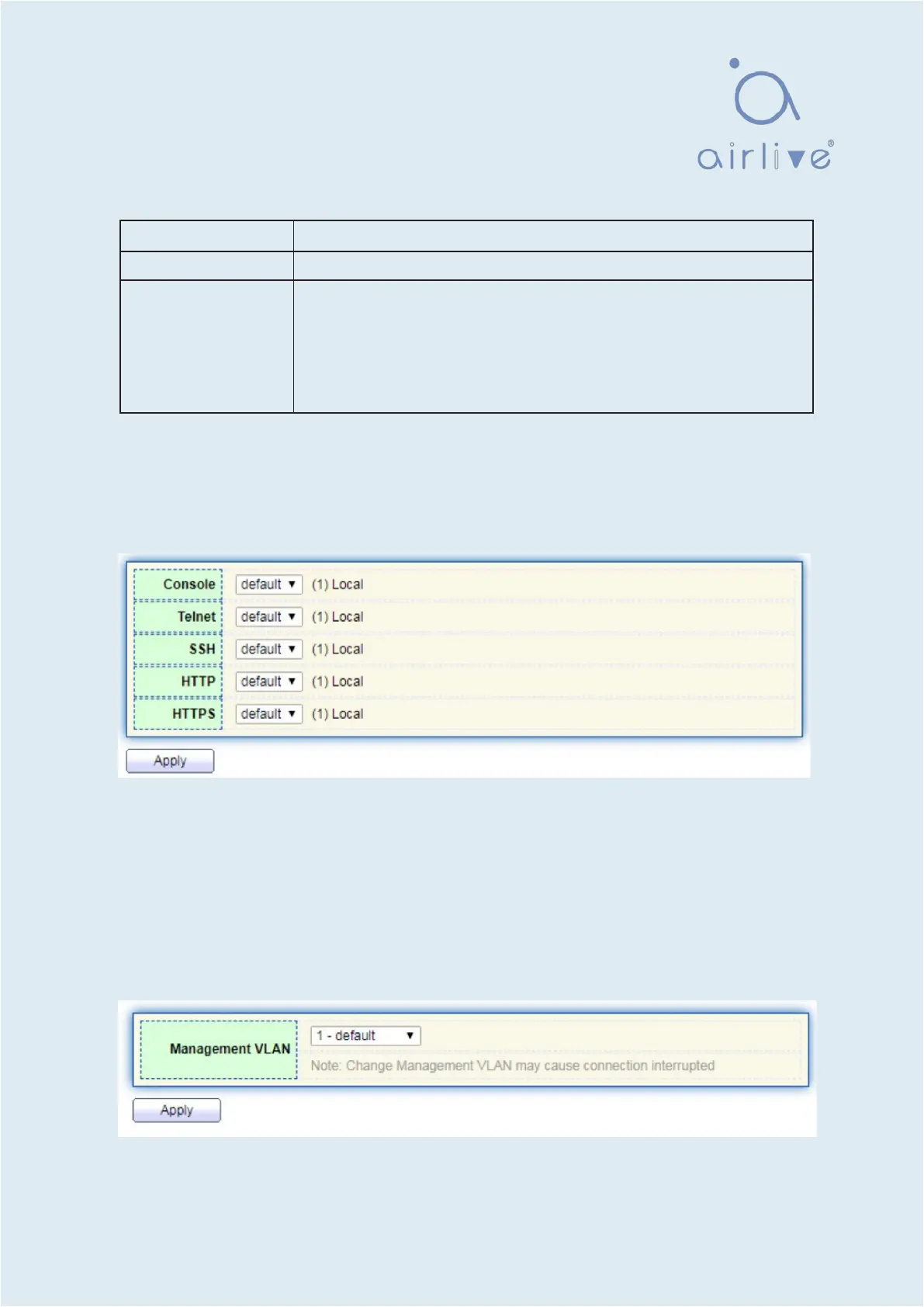 1. Click the “Security > Management Access > Management VLAN”, enter