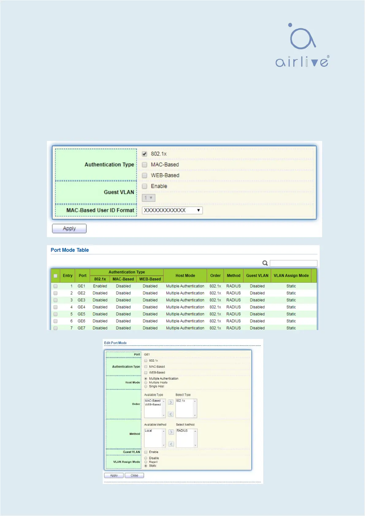 Enable the global setting of 802.1x/MAC/WEB authentication network access control