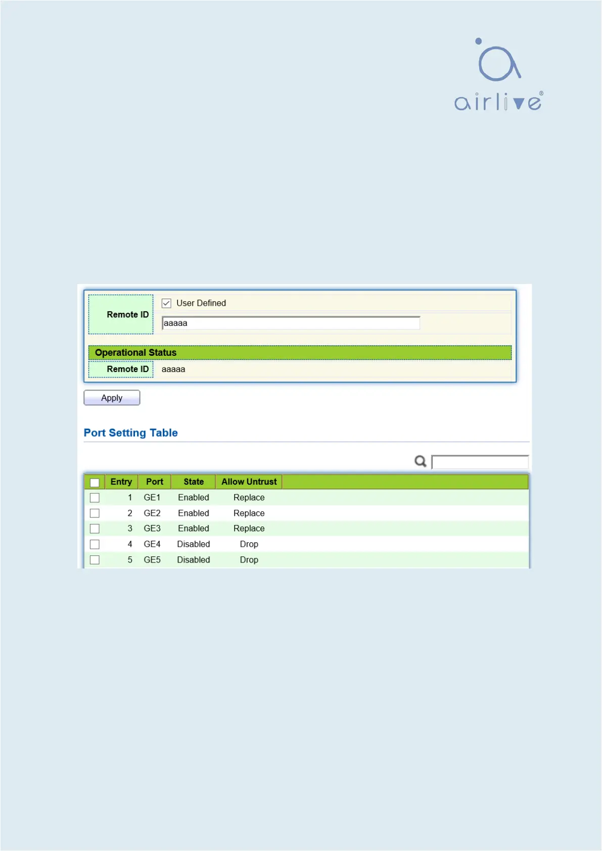 flowing through the port, fill in the Option 82 according to the default configuration of Circuit
