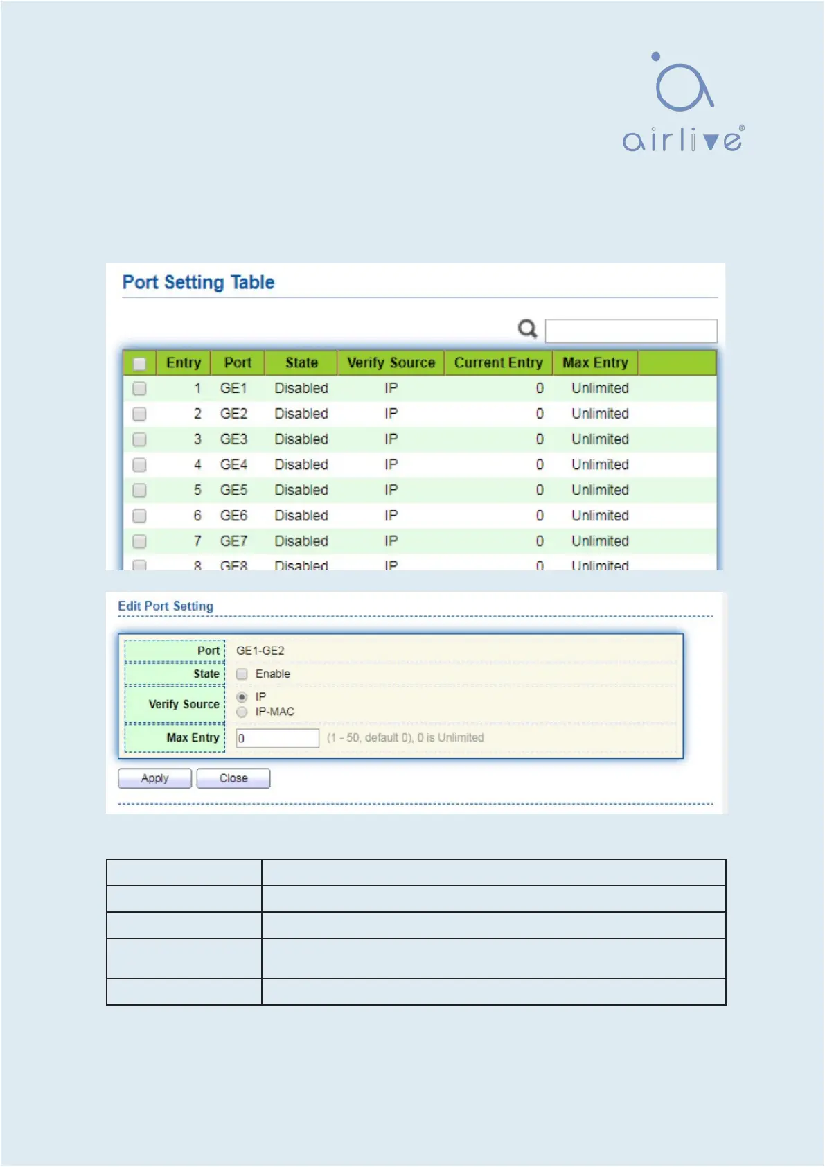 1. Click the “Security > IP Source Guard > Port Setting” enter port configuration