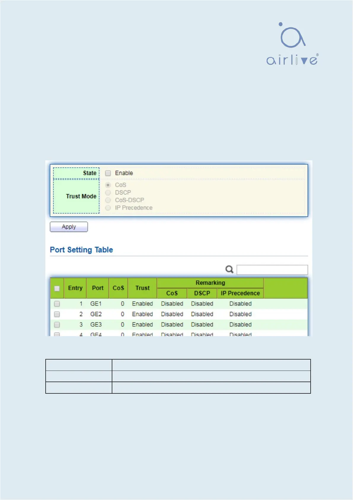 Trust Mode It can be divided into CoS, DSCP, CoS-DSCP and IP priority