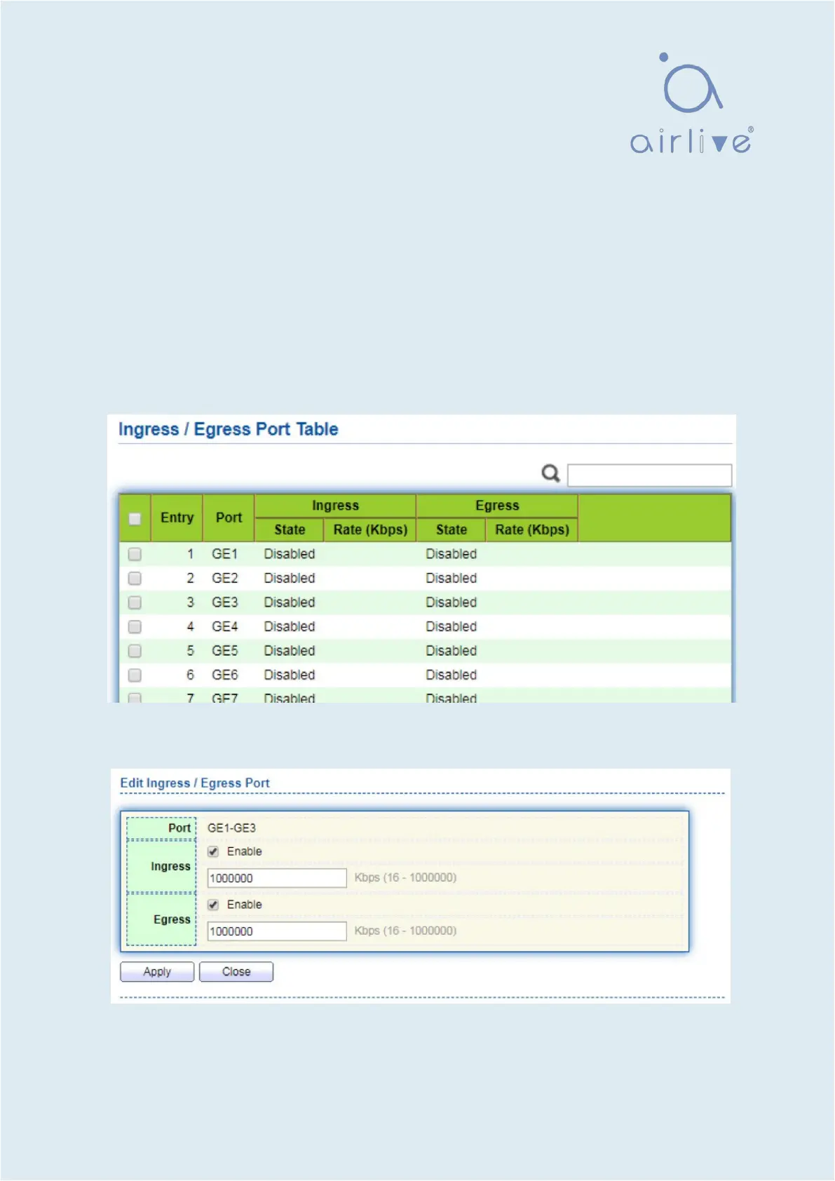 1. Click the “QoS > Rate Limit > Ingress / Egress Port” in the navigation bar to