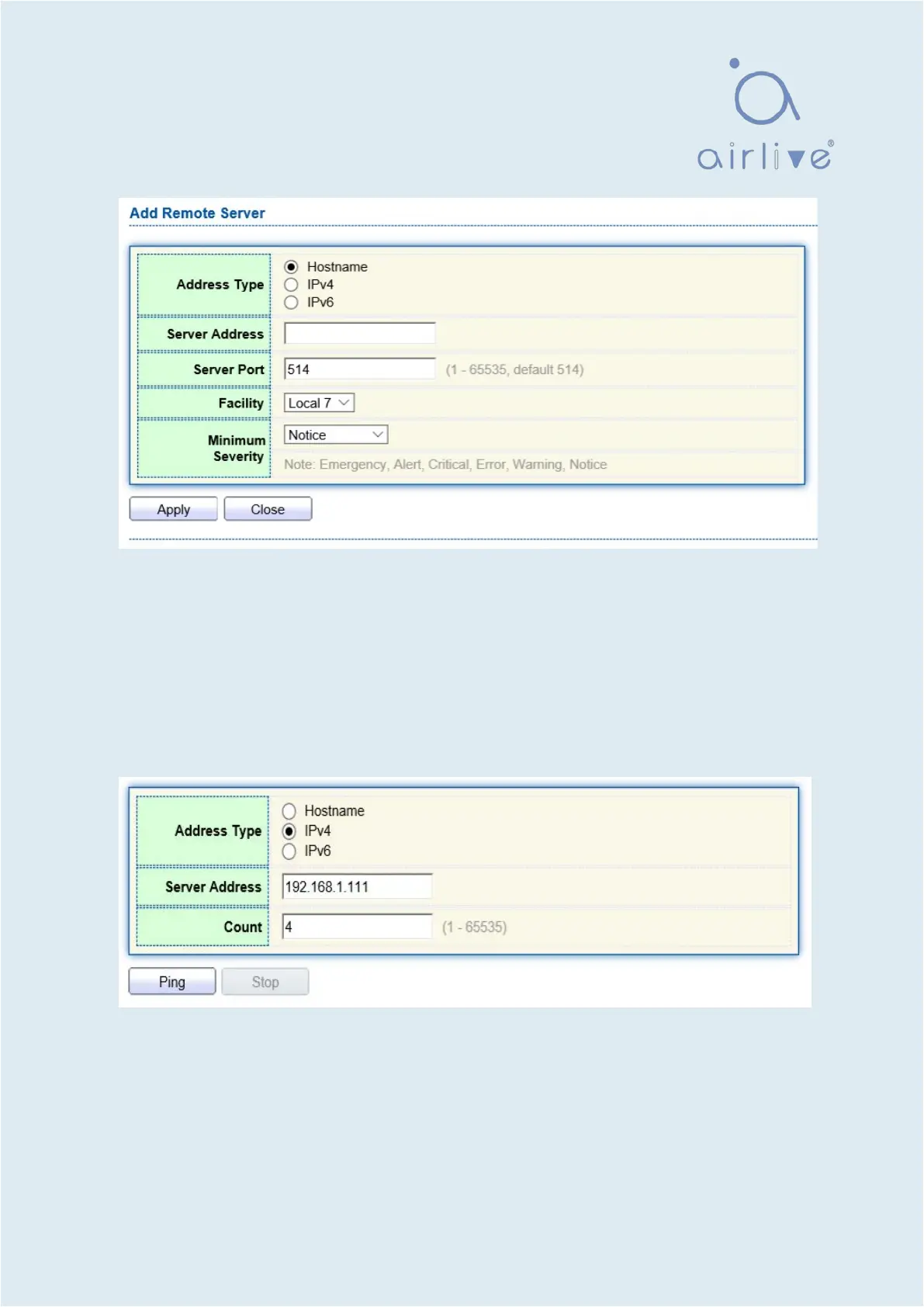 1. Click the “Diagnostics > Ping” in the navigation bar to enter a host name or an IP
