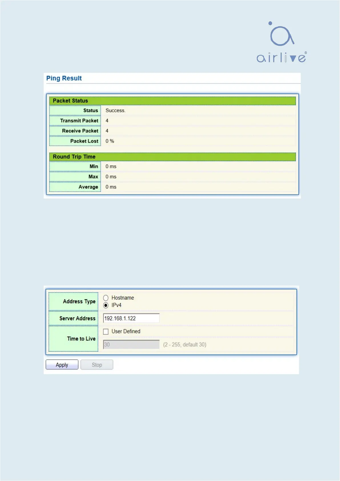 1. Click the “Diagnostics > Traceroute” in the navigation bar to enter a host name or