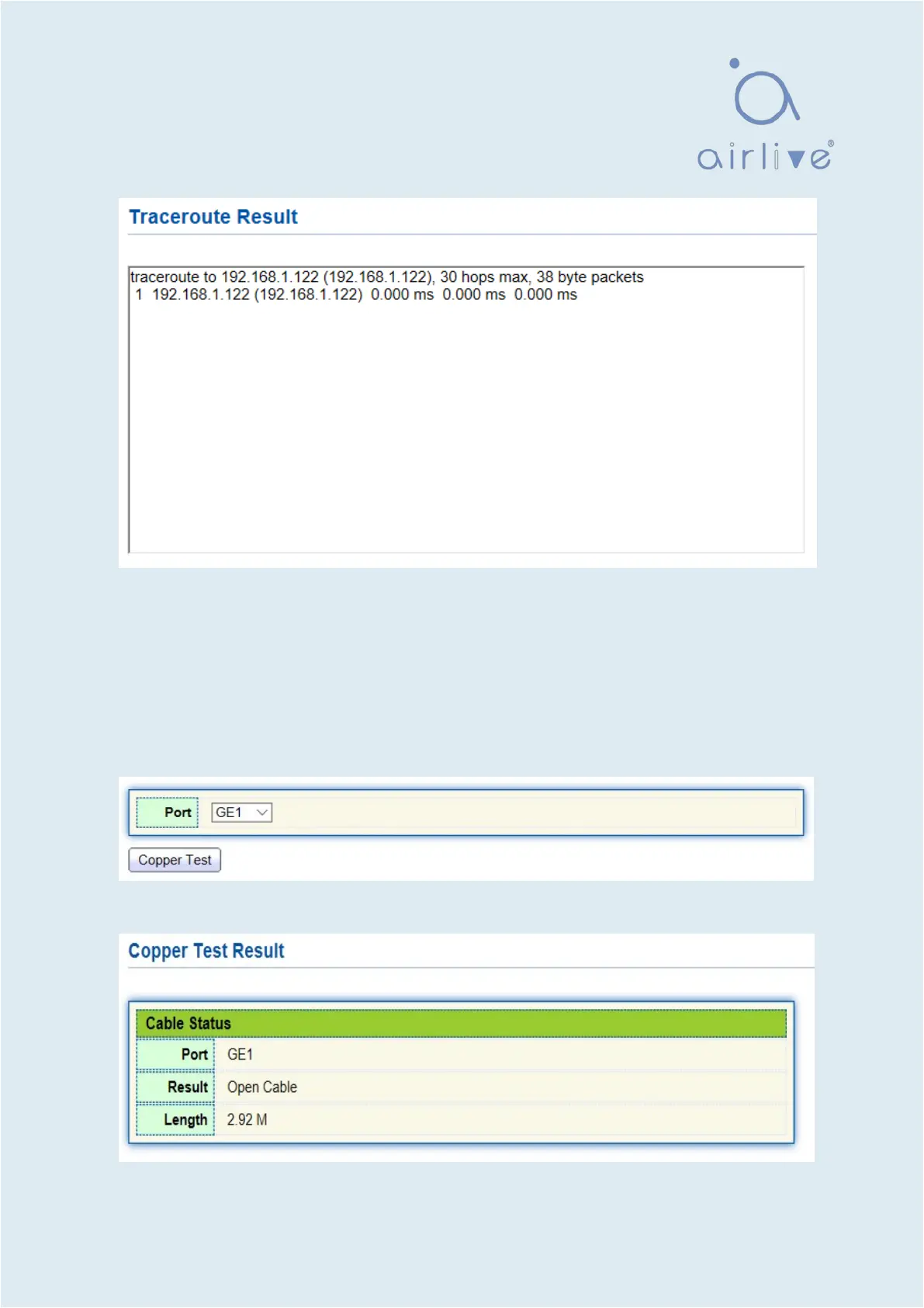 1. Click the “Diagnostics > Copper Test” in the navigation bar to select a port for test