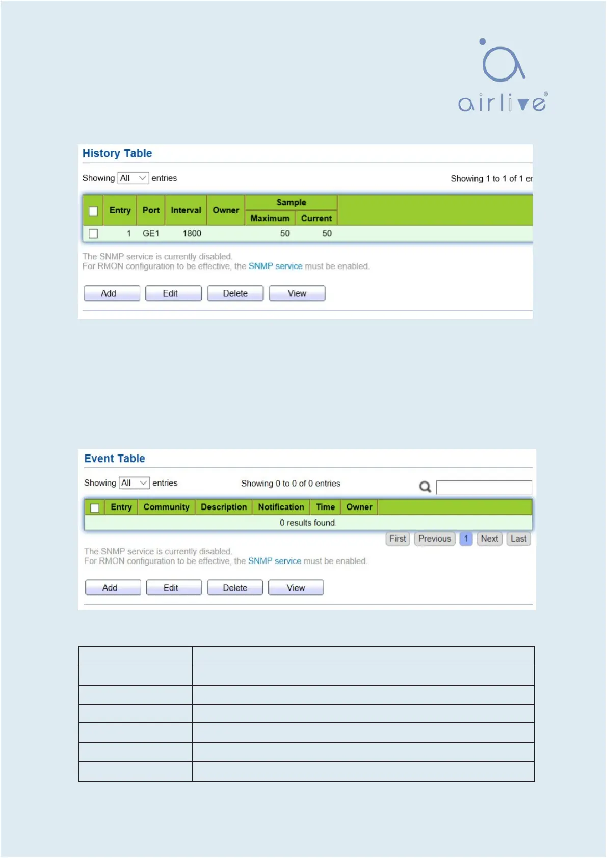 1. Click the “Management > RMON > Event” in the navigation bar as follows.