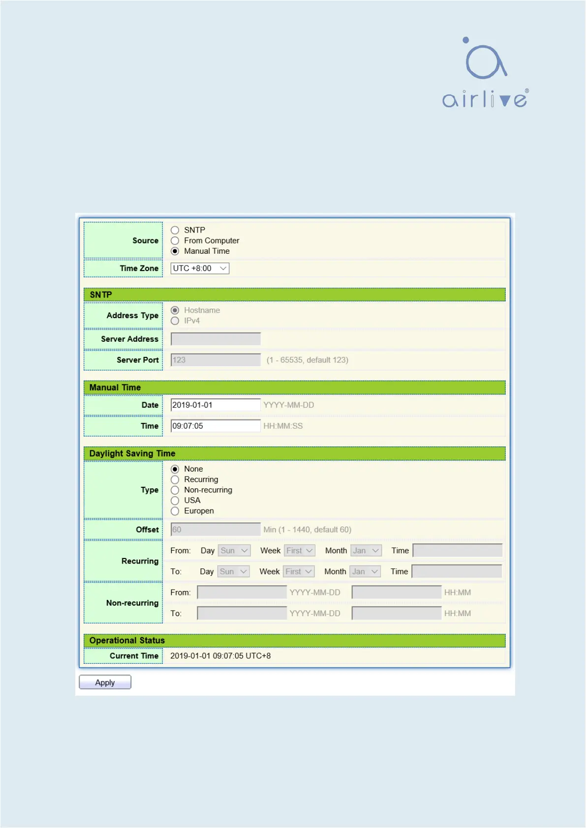 1. Click on the “Network > System Time” in the navigation bar as follows.