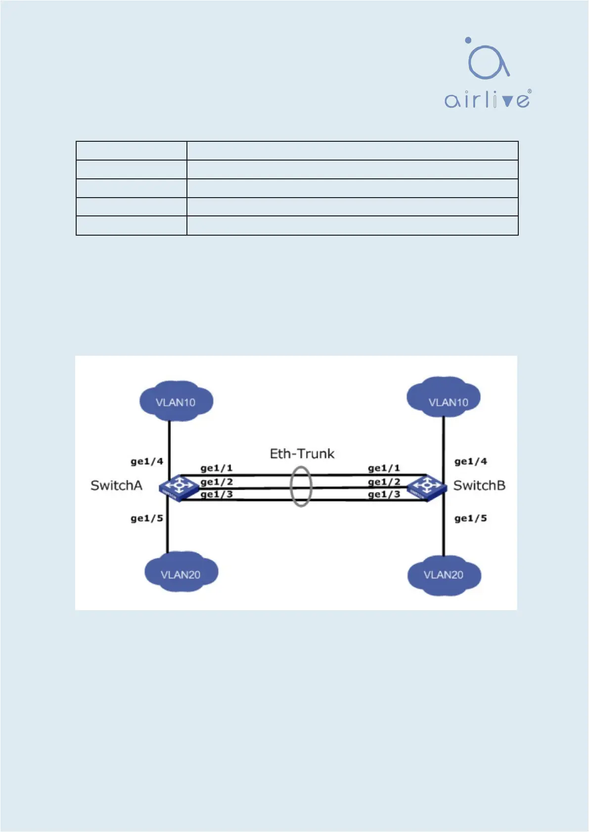 As shown below, Switch A and Switch B connect VLAN 10 and 20 via Ethernet