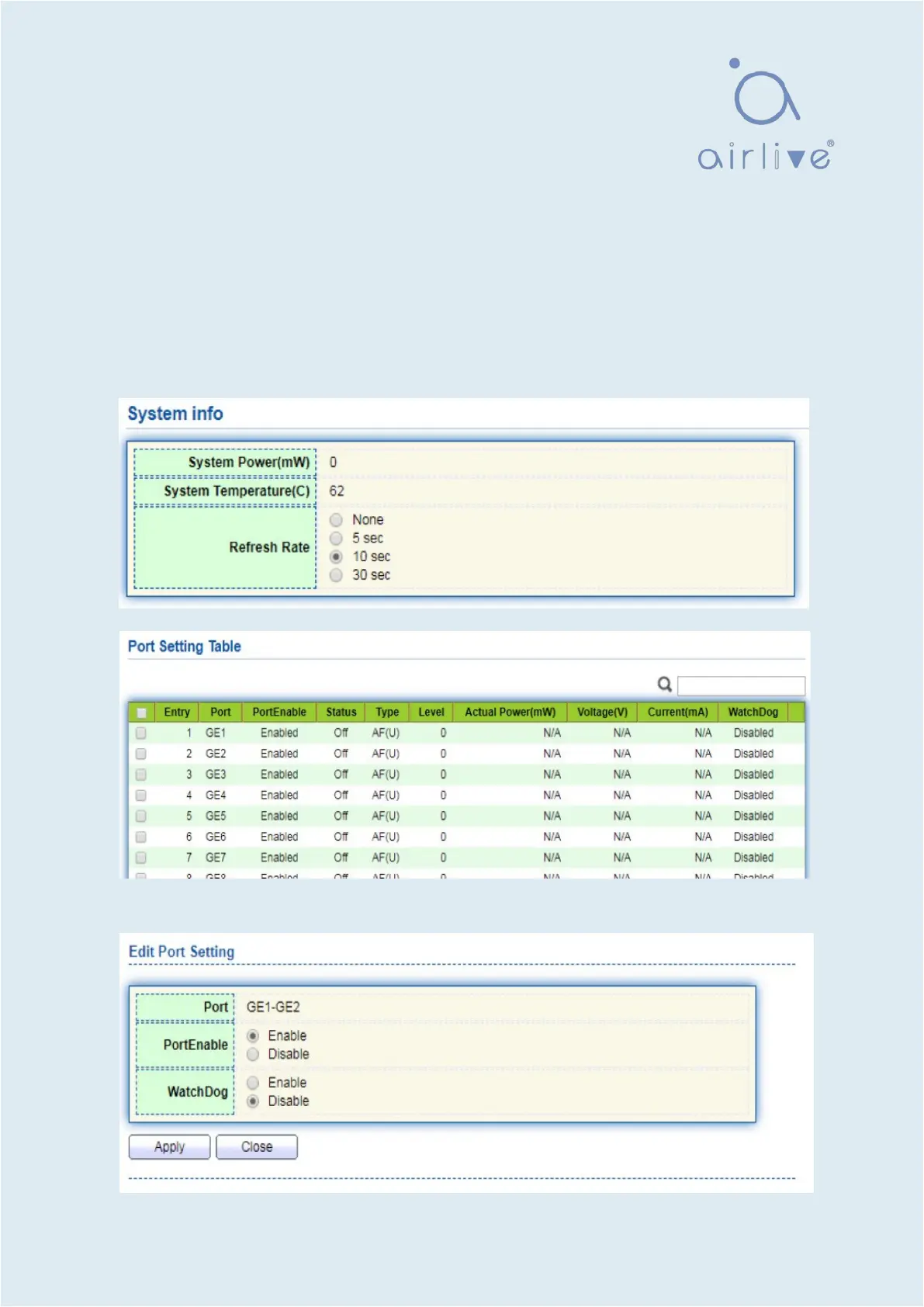 Bekijk gratis de handleiding van Airlive POE-GSH2404M, stel vragen en lees de antwoorden op veelvoorkomende problemen, of gebruik onze assistent om sneller informatie in de handleiding te vinden of uitleg te krijgen over specifieke functies.