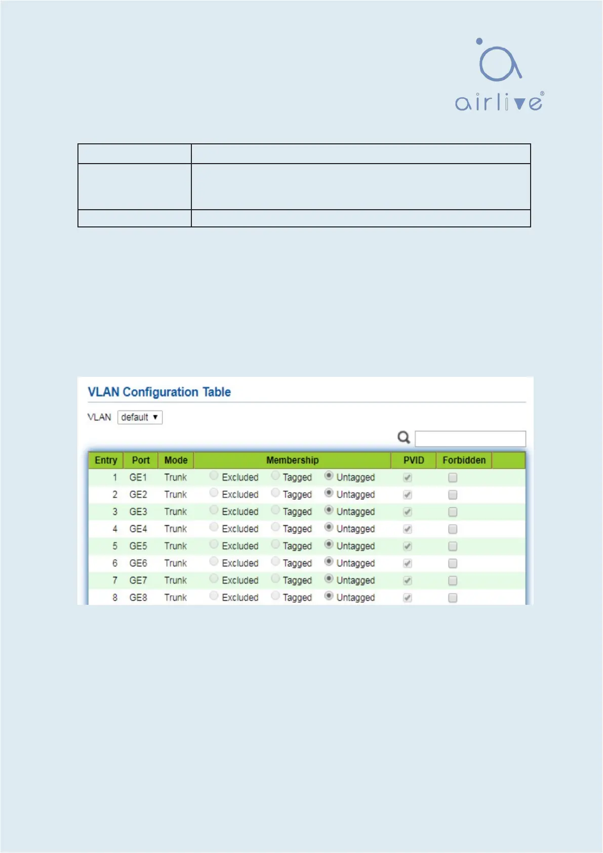 1. Click the “VLAN > VLAN > VLAN Configuration” in the navigation bar, select the