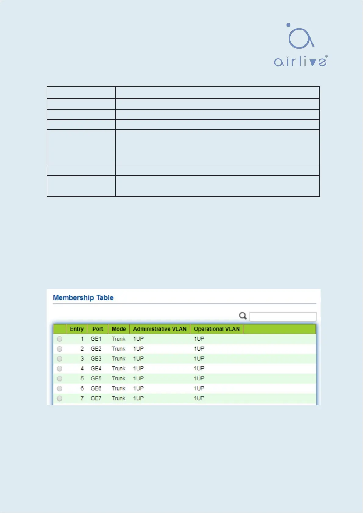 1. Click the “VLAN > VLAN > Membership” in the navigation bar, select the port to