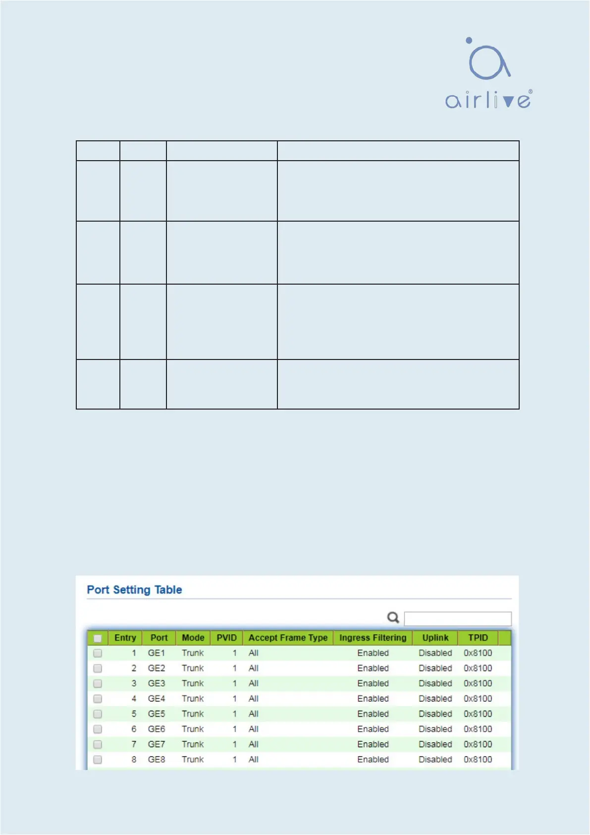 1. Click the “VLAN > VLAN > Port Setting” in the navigation bar, select the port and