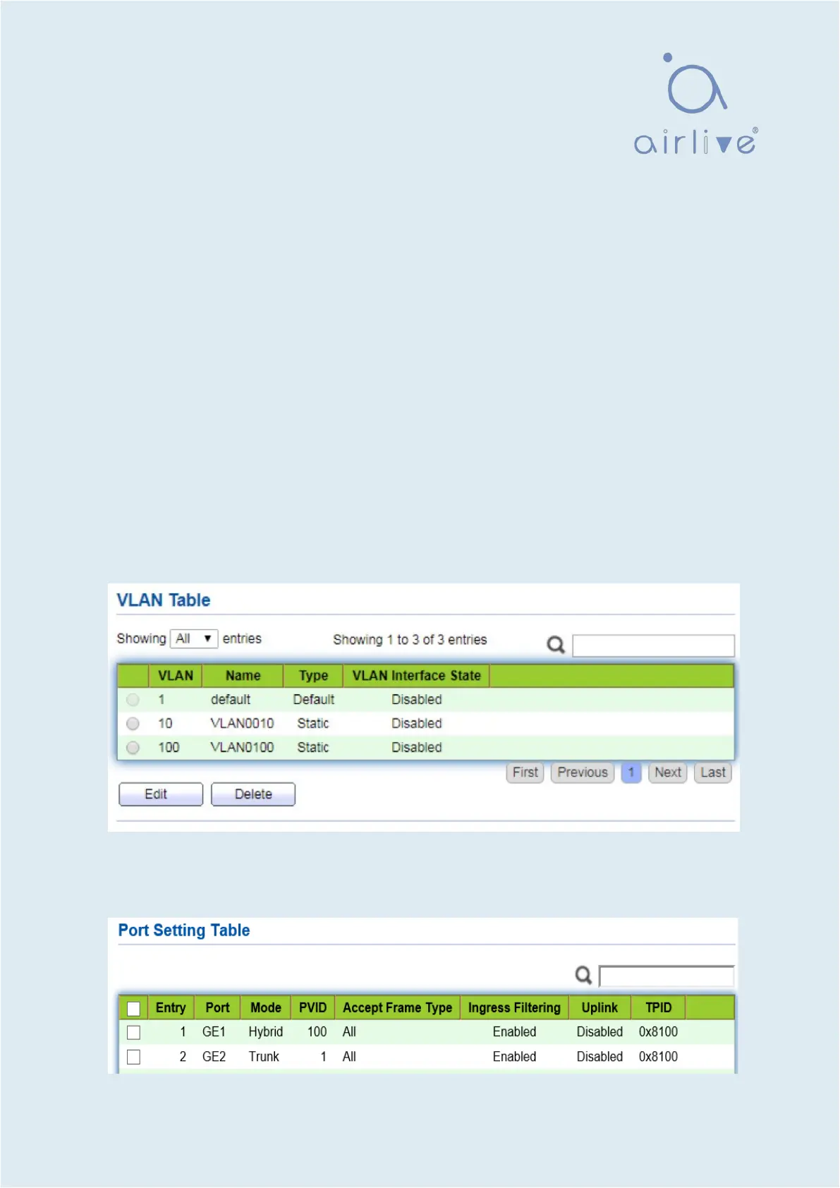 ● Set GE1 PVID of 100 on the switch. ·
