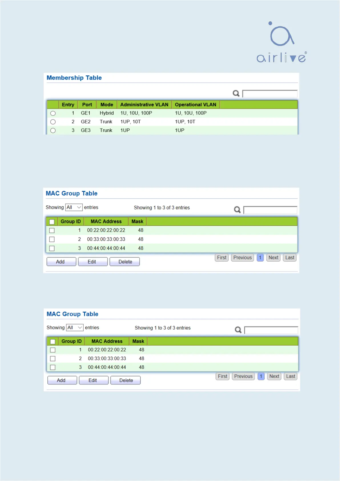 Click the “VLAN > MAC VLAN > MAC Group” in the navigation bar, enter the MAC
