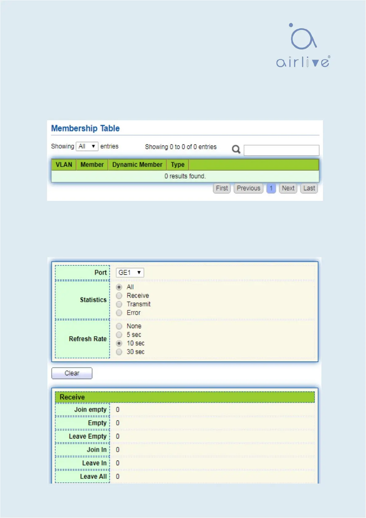 1. Click the “VLAN > GVRP > Statistics” in the navigation bar as follows.