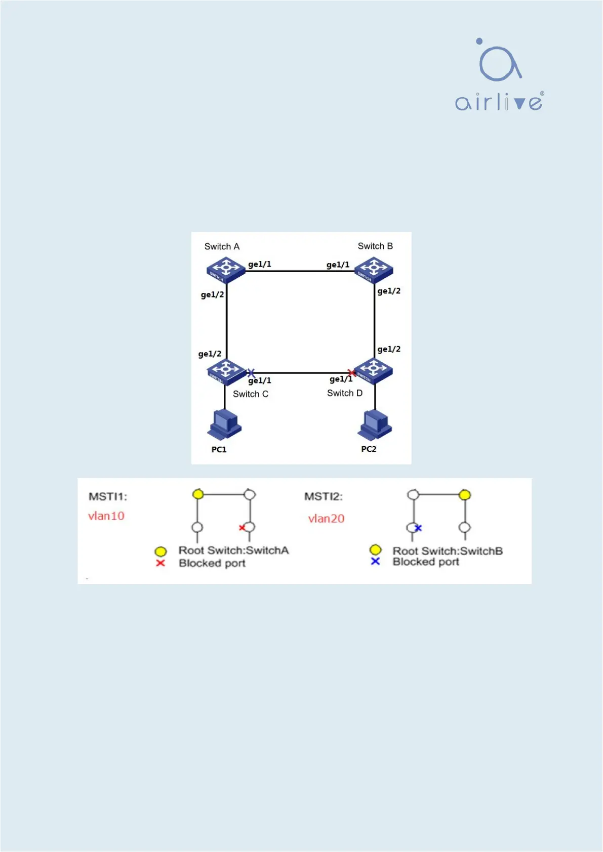 of VLAN10 and 20. MSTP can set up the VLAN mapping table to associate VLANs with