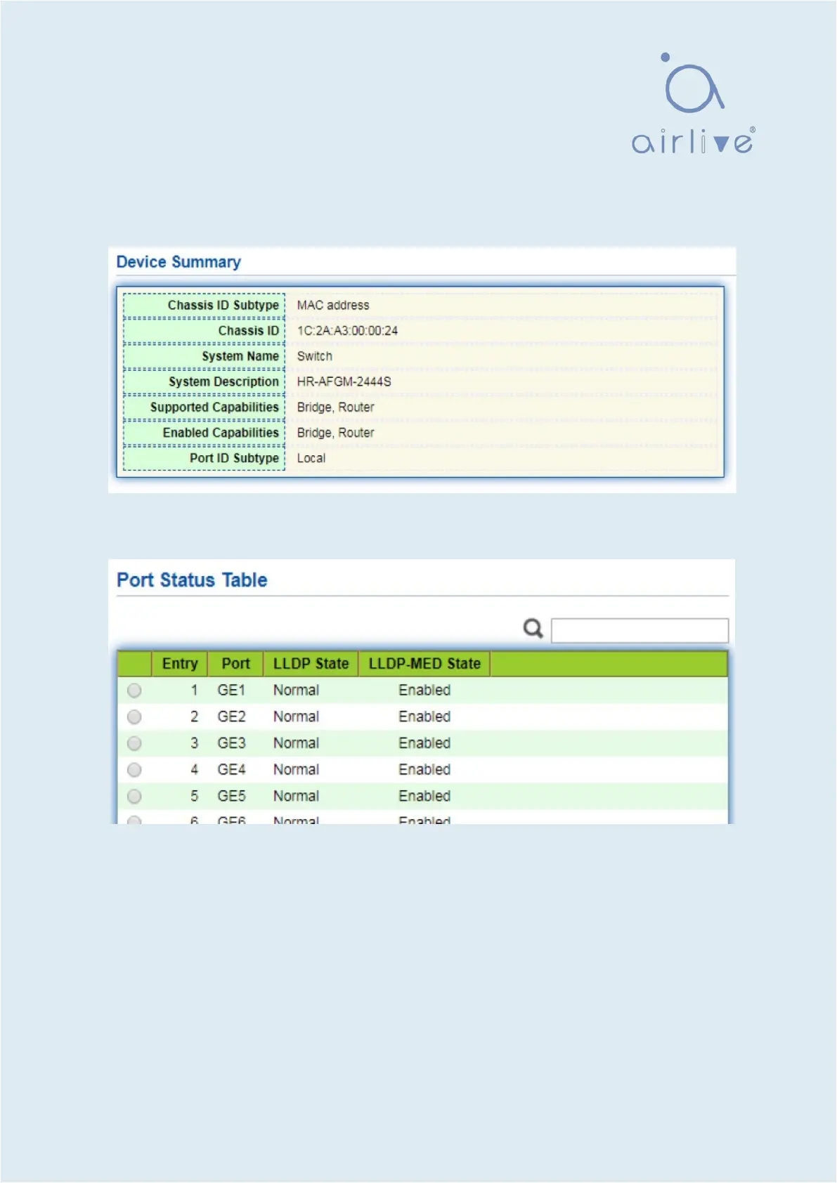 1. Click the “Discovery > LLDP > Neighbor” in the navigation bar as follows.