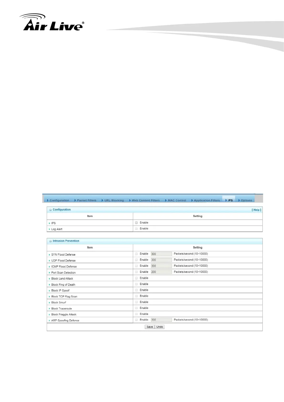 You can enable the IPS function and check the listed intrusion activities if necessary. There