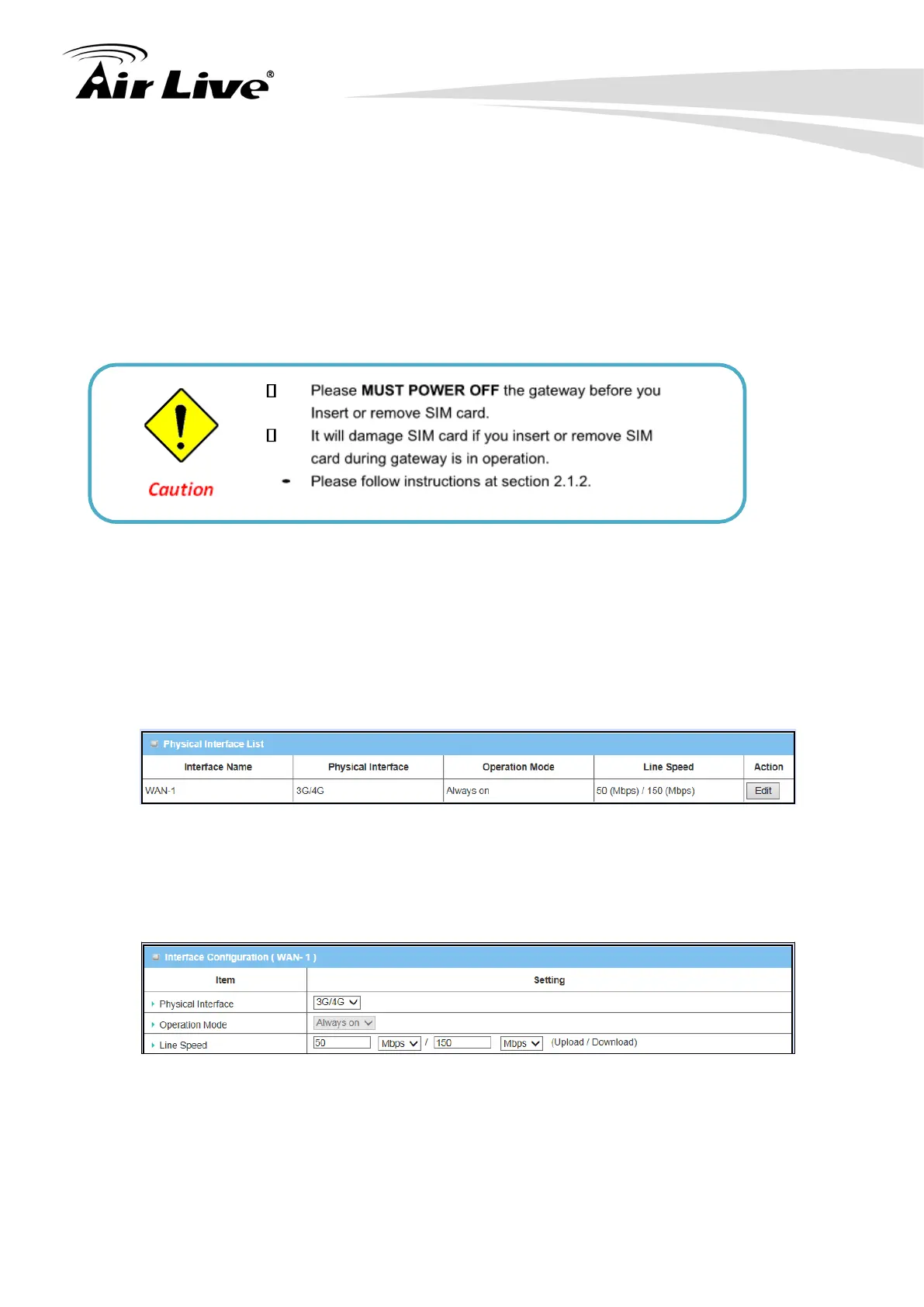 there is only “3G/4G” physical interface for Internet connection. To use embedded