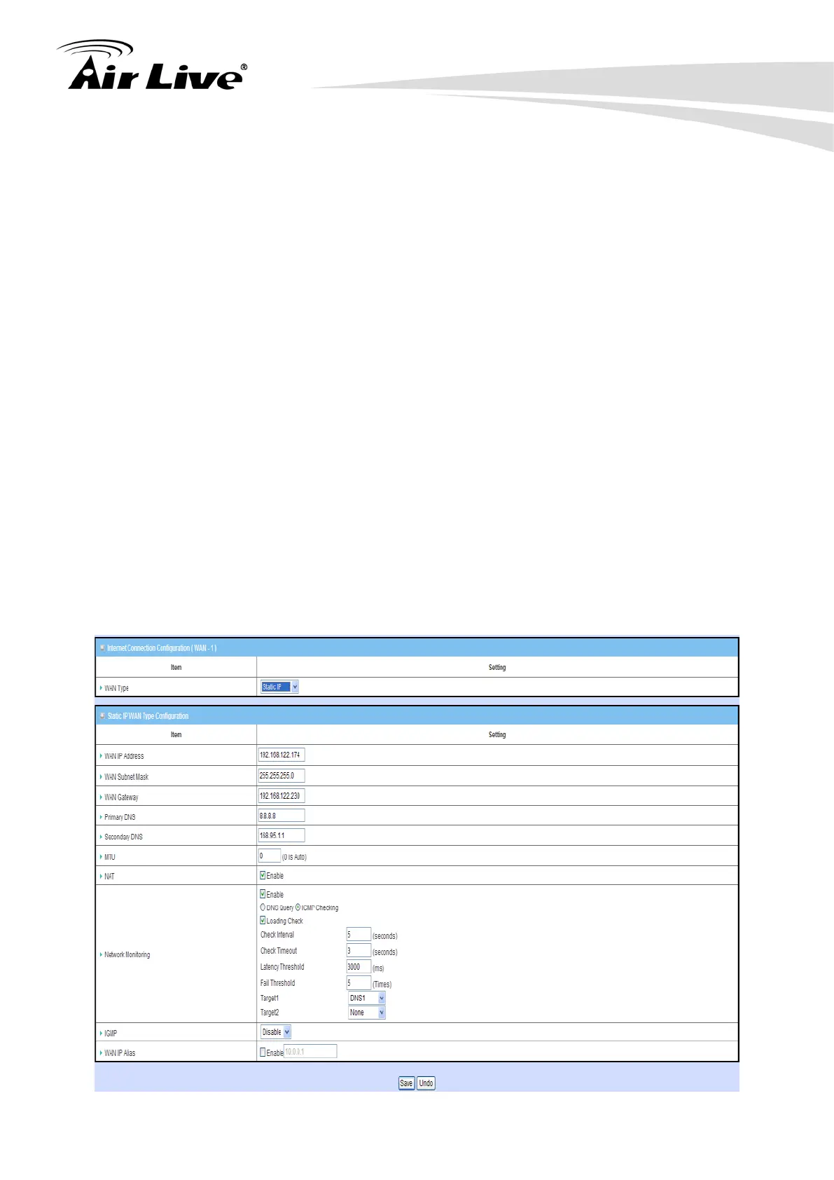 Fail Threshold: Times of failed checking. This WAN connection will be recognized as
