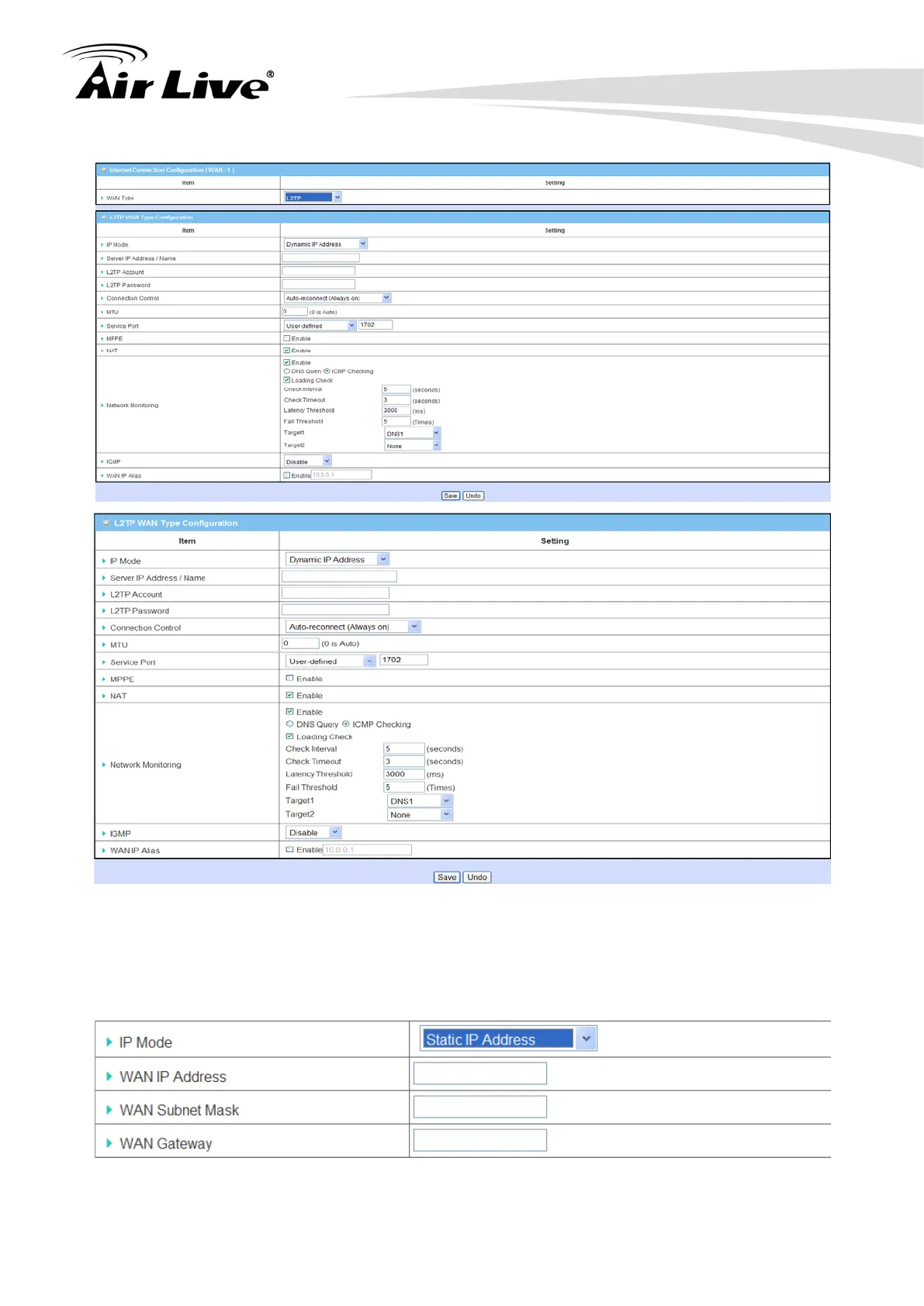 IP Mode: Please check the IP mode your ISP assigned, and select “Static IP Address” or