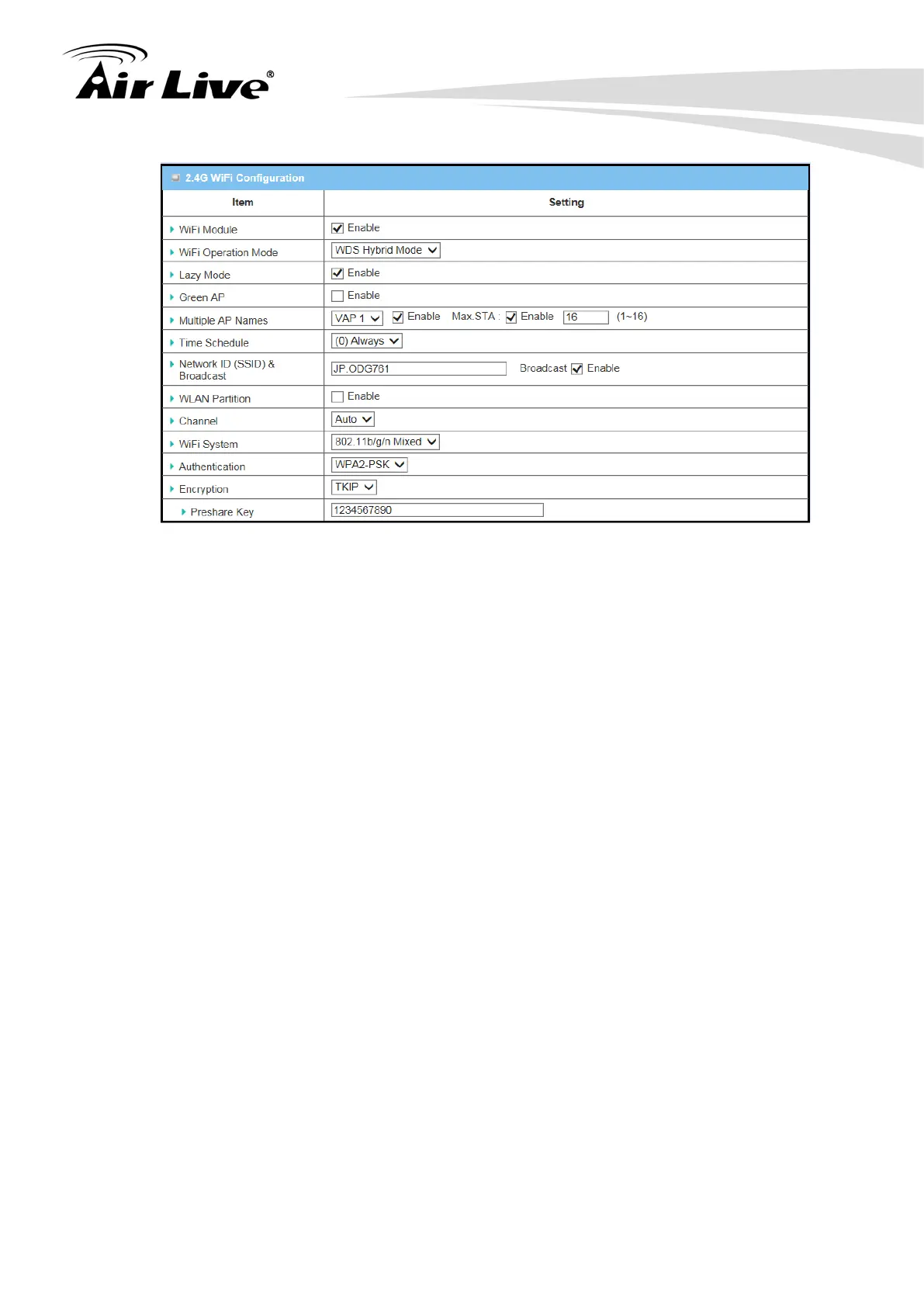 Points that have the same Network ID.(The factory default setting is “airlive”)
